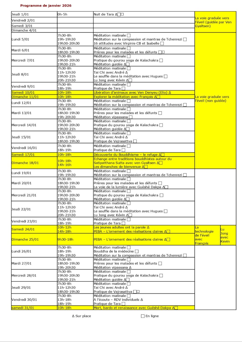 Et puis après notre retraite annuelle de lamrim pendant les vacances de Noël, nous vous proposons deux retraites le week-end des 24 et 25 janvier :