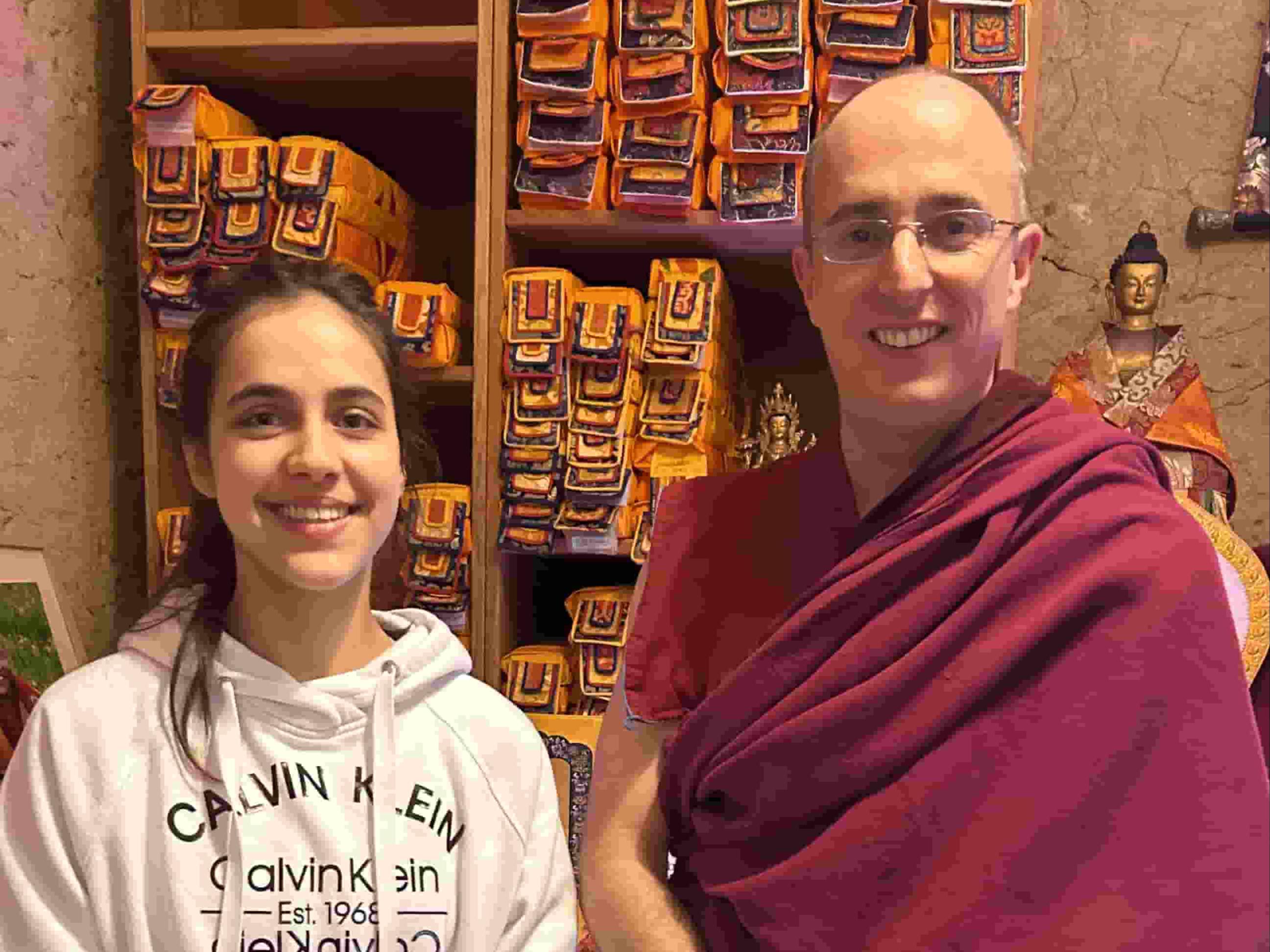 Récemment, ma famille et moi avons participé à la retraite de St Cosme sur le lamrim avec Vénérable Gyaltsen. Cela a été un tournant très fort et décisif dans ma vie. J’ai ressenti une connexion profonde avec lui : il émane de sa personne une grande bonté, et il a une capacité remarquable à expliquer des concepts profonds de manière claire et adaptée à mon âge. Une réponse qu’il m’a donnée au sujet de la vacuité m’a particulièrement touchée. Durant cette retraite, j’ai ressenti une grande quiétude que je cherchais depuis longtemps, ainsi qu’une immense gratitude pour l’accueil bienveillant qu’il m’a offert malgré mon jeune âge.