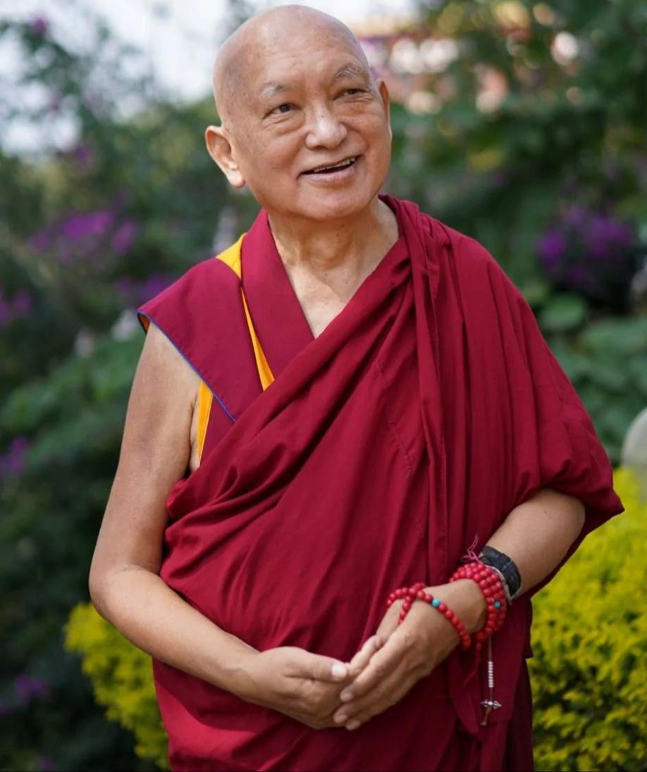 Lama Zopa Rinpoché dans le jardin du monastère de Kopan (Népal) en octobre 2020 (photo par Vén. Lobsang Sherab).