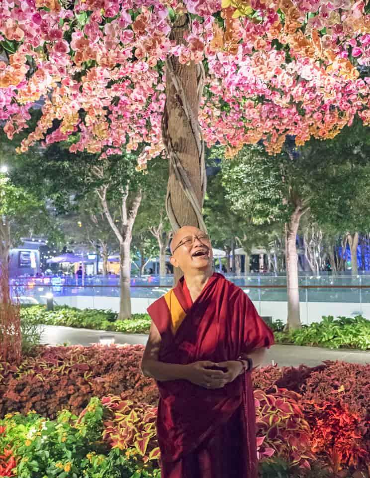 Lama Zopa Rinpoché à l'aéroport Jewel Changhi de Singapour en septembre 2019 (photo par Vén. Lobsang Shérab).